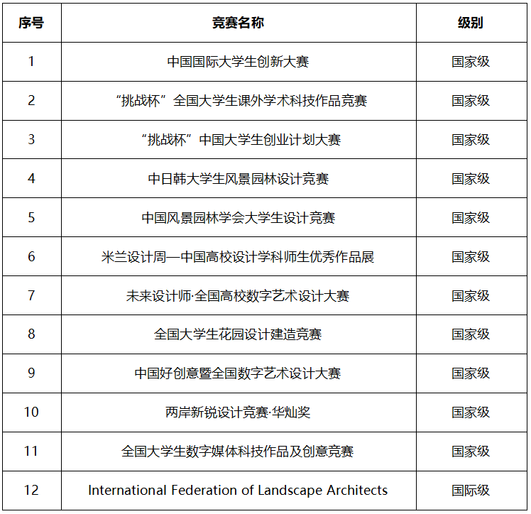 ⑥ 以山西农业大学城乡建设学院为参赛单位,在国际、全国性研究生创新实践系列大赛及附件一大赛名单上获得国家级三等奖及以上奖项(排名前3)。