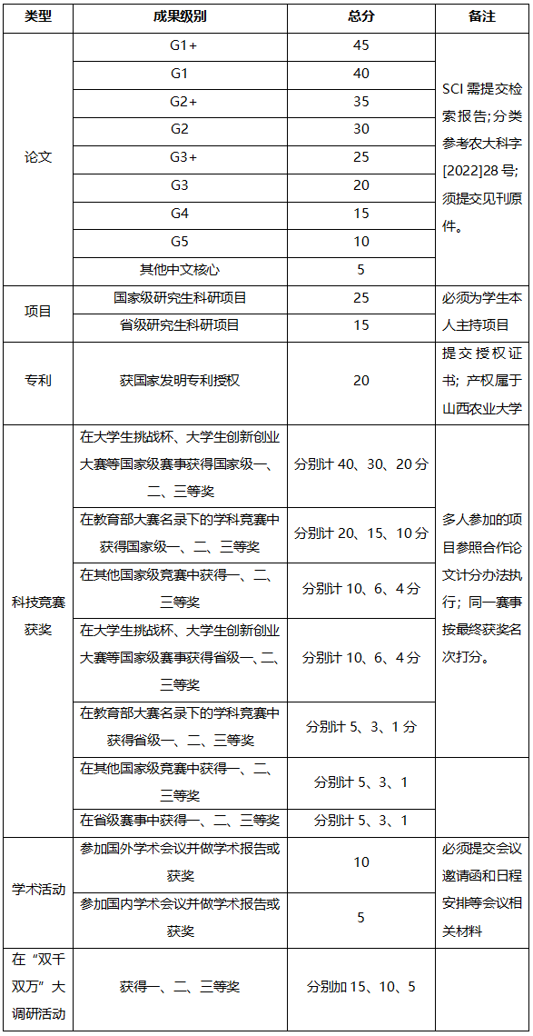 1.科研成果须是以山西农业大学为第一作者单位公开发表学术论文;