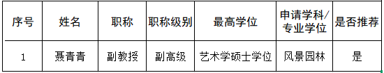 城乡建设学院学位评定分委员会根据《山西农业大学研究生指导教师管理办法》规定的遴选条件,对申请人的业务条件逐项审核,对其材料的真实性严格把关,遴选出符合条件的1位申请人(名单见下表)。现将审核结果(含认定条件)进行公示,公示期为3个工作日。