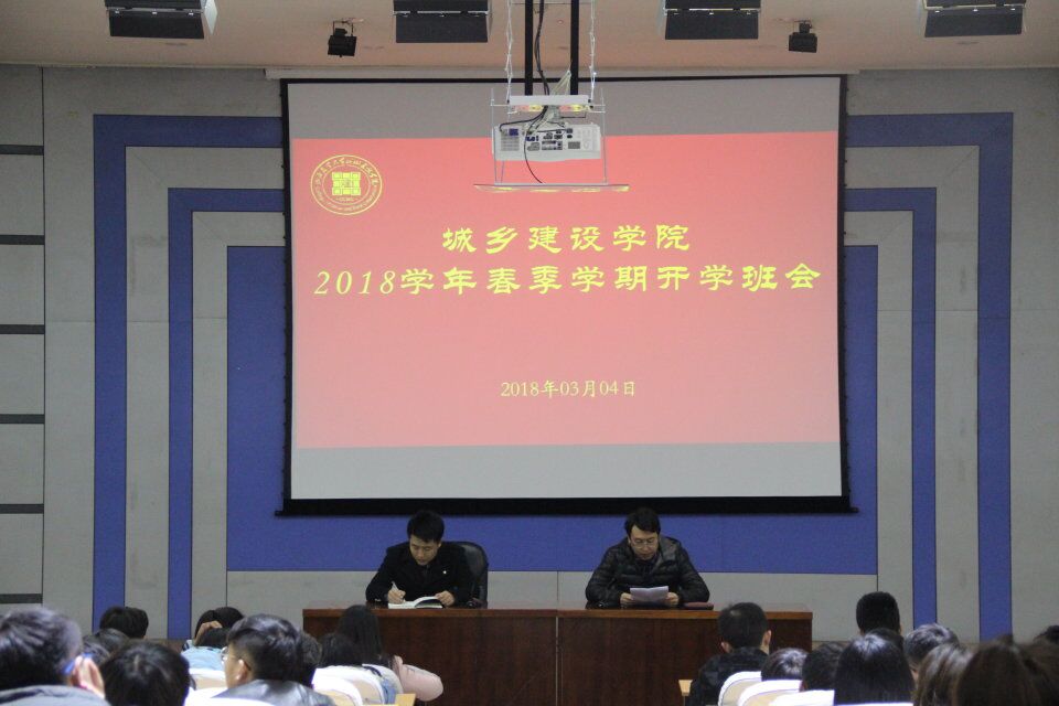 3月4日晚7点,城乡建设学院在实验大楼600人报告厅召开了新学期第一次集体班会。城建院党委副书记冯涛、团干辅导员及全体大一、大二学生参加了此次会议。