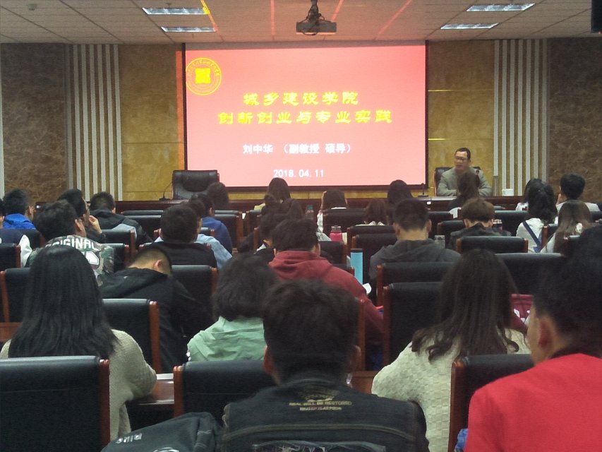 讲座伊始,刘中华老师首先从雨天积水、建筑布置等一系列问题引出创新创业存在于我们身边各处,希望同学们在日常生活中去思考问题、发现问题、解决问题。紧接着,刘老师就创新创业与自己所学专业相结合进行分析,他指出:对于同学们而言,学好专业基础知识是搞好创新创业的基础,学以致用是学习成熟的体现,大学生是知识与实践之间的纽带,将两者结合才能成就创新创业的意义。最后,刘老师对同学们提出三点希望:一是创新创业需要结合国家当前政策,可以结合当前两会热点话题,寻找创新方向;二是团队成员的组建需要优势互补,团队成员各司其职,才能成就团队最后的成功;三是一个创新策划方案需要有长久之计,不同年级的同学之间组建共同体,实现方案层层对接,使其步入可持续发展之路。
