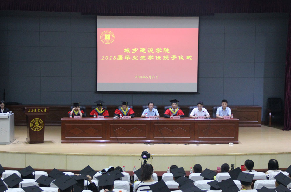 芳菲六月人依依,6月27日,城乡建设学院于图书馆报告厅举办2018届毕业生学位授予仪式。城建院党政领导、教师代表、辅导员以及学院2018届本科毕业生共同参加了此次学位授予仪式。