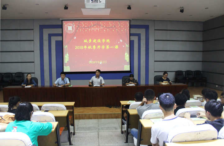 为调整学生学习状态,增强学院学风建设,保证开学秩序井然,城乡建设学院于9月2日下午七点在实验大楼报告厅开展2018年秋季开学第一课,城乡建设学院党委副书记冯涛,教学秘书闫俊丽,分团委辅导员王立柱、谢艳丽、张敏出席,全体大二、大三、大四学生参加了此次大会。