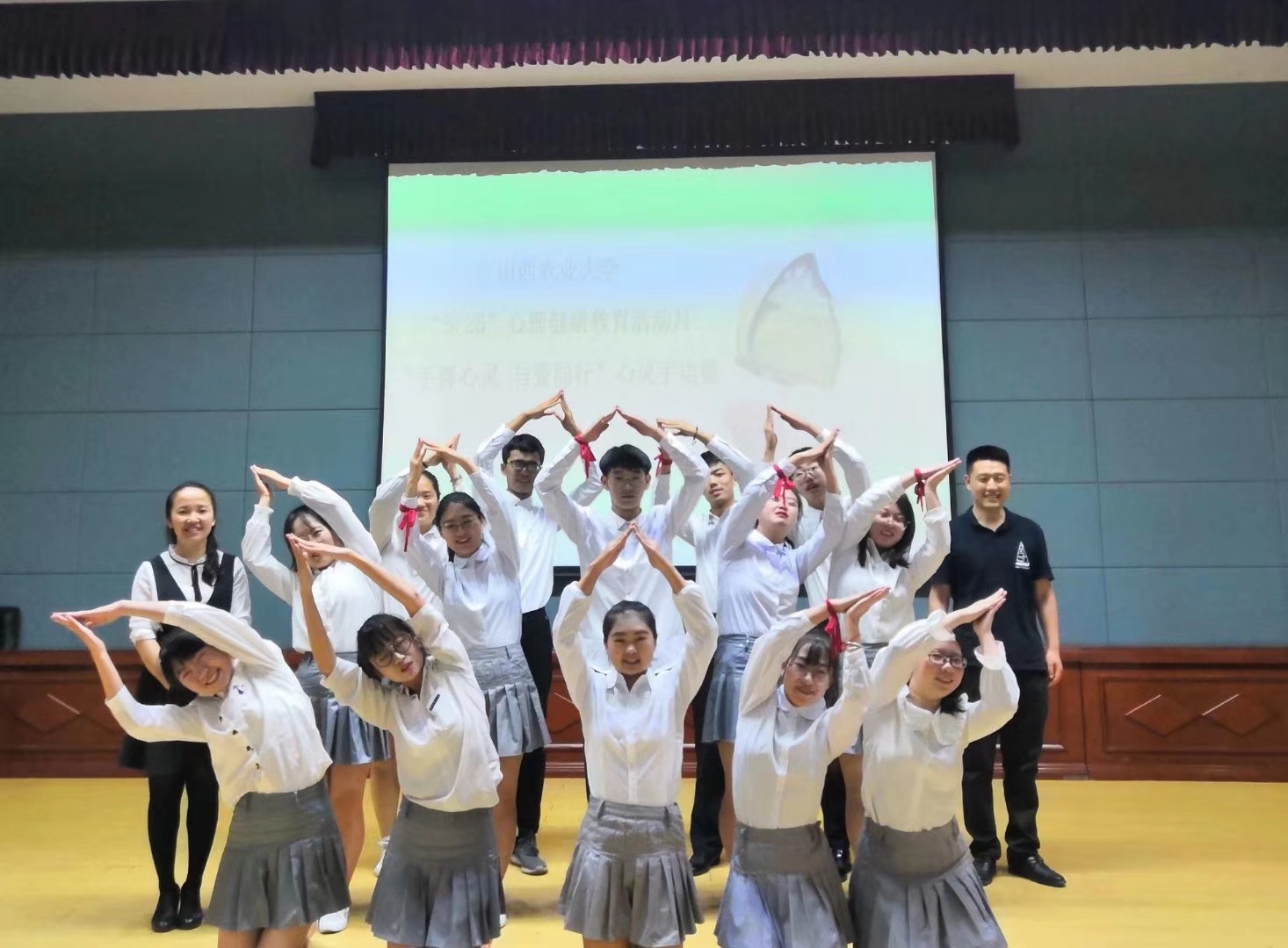 为了进一步加强我校大学生心理健康教育,丰富大学生课余生活,引导学生关注心理健康,更好的展现当代大学生积极进取的精神面貌。由山西农业大学心理健康教育指导中心主办,食品科学与工程学院、林学院、信息科学与工程学院承办的“手舞心灵 与爱同行”心灵手语操大赛于5月24日在图书馆报告厅正式举办。城建院代表队积极参赛,荣获三等奖。