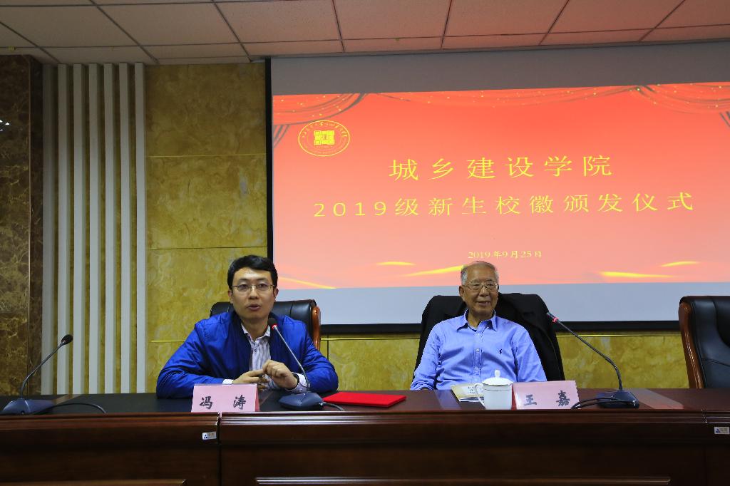 为加快校园文化建设,促使百年文明理念薪火相传,9月25日下午,在崇实楼615室。城建院诚邀王嘉老师为大一新生颁发新校徽,院党委副书记冯涛、19级辅导员黄程鹏出席活动,大一新生全体到场参加。