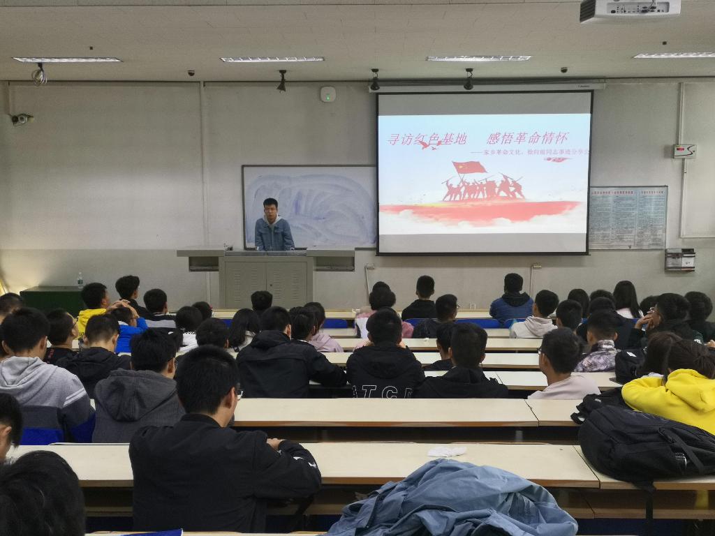五千载峥嵘厚重,七十年锐意新光。值此中华人民共和国成立70周年之际,为弘扬爱国主义精神,激发同学们的爱国情怀,10月29日,城建院于崇信楼202教室举行了家乡红色革命文化分享活动。19级辅导员黄程鹏出席本次活动,大一部分新生参加活动。