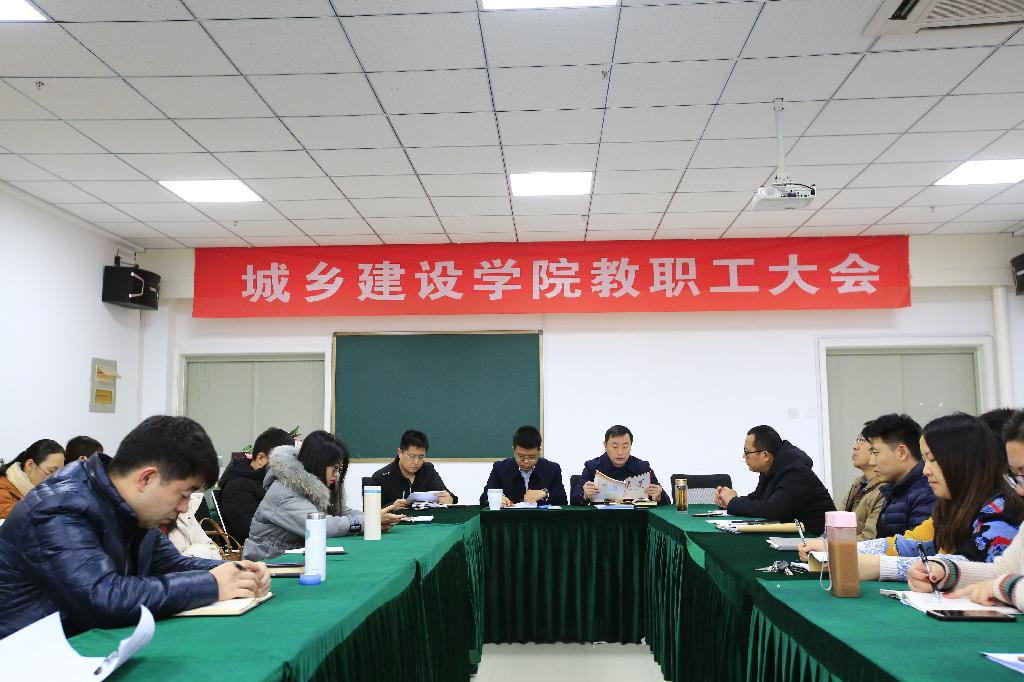2020年1月8日上午,城乡建设学院于崇实楼402召开了第二届教职工大会第二次会议。学院党委书记李平则、副院长武小钢、副书记冯涛、副院长贠慧星出席会议,会议由院党委书记李平则主持,学院全体教职工全部参会。