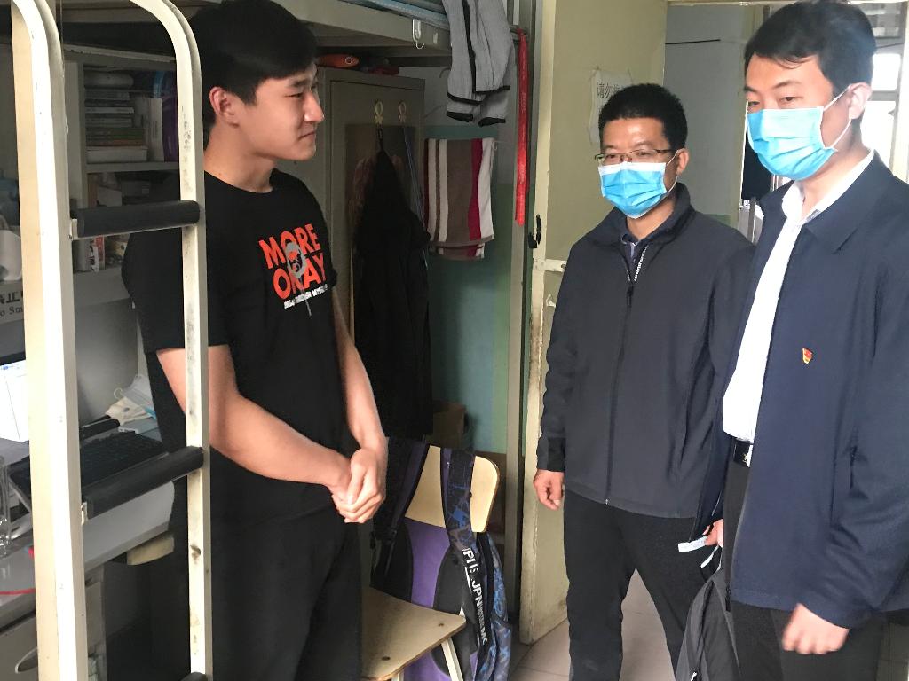 4月29日下午,城乡建设学院党委书记李平则、副院长武小钢、党委副书记冯涛、副院长贠慧星带领办公室、分团委老师前往学生公寓看望返校毕业生,了解大家近期思想状况与毕业、就业问题。