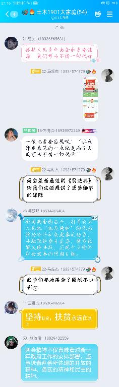 大家也认真分享了学习两会精神的感受,其中土木1902班班长宋建钢表示:作为当代大学生要时刻关注社会国家各项方针政策,提升自身的政治敏感性和政治辨别力,正确认识世界和国家发展大势、认识时代赋予自己的责任和历史使命、树立远大抱负。