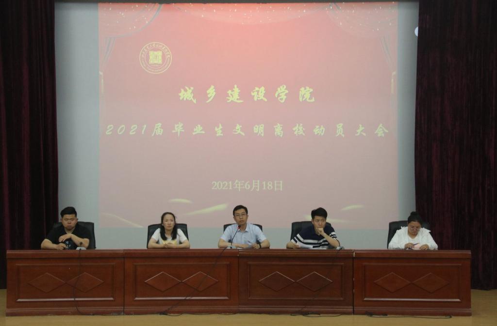 6月18日下午,城建院于图书馆报告厅举办2021届毕业生文明离校动员大会,党委副书记冯涛及分团委老师出席本次大会,2021届全体毕业生参会。