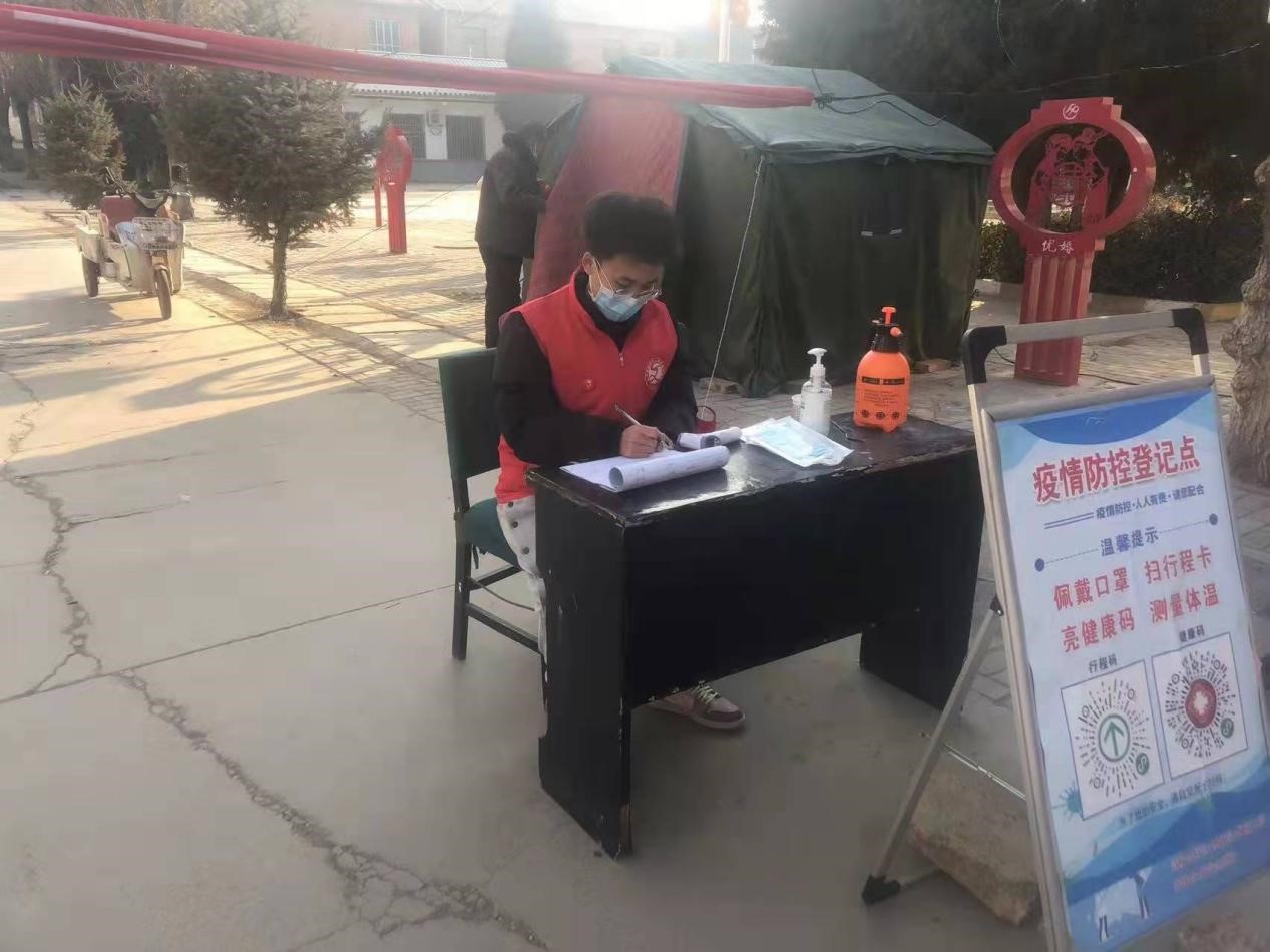 万鑫鹏的家乡在山西省长治市长子县碾张乡罗辛庄村,他在寒假回乡后第一时间报名参加了社区的疫情志愿服务队,接到社区任务后,他立即与工作人员对接配合开始工作。在社区服务工作中,万鑫鹏每天在疫情卡点处执勤,对过往人员、车辆进行测温、消毒以及登记,并对外来人员进行劝返。万鑫鹏讲到:“能为社区抗疫事业出力,虽忙碌辛苦,但使命光荣!”