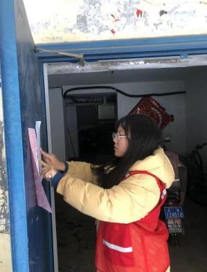 春节寒假期间,返乡人流量增多,疫情防控工作量激增,政府发布了大学生志愿者召集令,我院土木2002班的石昇蓉立刻响应政府号召,在当地社区报名成为了疫情防控志愿者。石昇蓉接到任务后,立即开始工作,对社区内住户进行入户登记,在社区里张贴疫情通告,并借助微博、小红书等社交平台,采用图片、视频等多种形式,对抗“疫”宣传知识等内容进行推送。她披星而出,戴月而归,尽管劳累,但始终坚守在防疫一线,不曾退缩。石昇蓉表示很荣幸自己能成为社区防疫志愿者的一员,能为抗疫工作尽微薄之力,她讲到:“在参与本次防疫工作后,我更加理解那些奋斗在一线的防疫工作人员是多么伟大。作为一名大学生,更应该履行自己的义务,尽自己的所能,为疫情防控做一些力所能及的事情。即使微不足道,但寸积铢累,只要每个人都做一个小事,累积在一起,就会给国家,社会带来很大的帮助。”