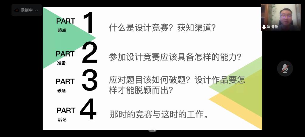 为贯彻落实“以赛促学,以学促进”的精神,提高学生创新创业能力,5月16日,我院特邀成都设计咨询集团、成都市市政工程设计研究院有限公司高级工程师黄川壑博士开展线上景观设计竞赛分享专题讲座,院党委副书记冯涛主持本次讲座,我院大一大二大三城乡规划和风景园林专业学生参加。