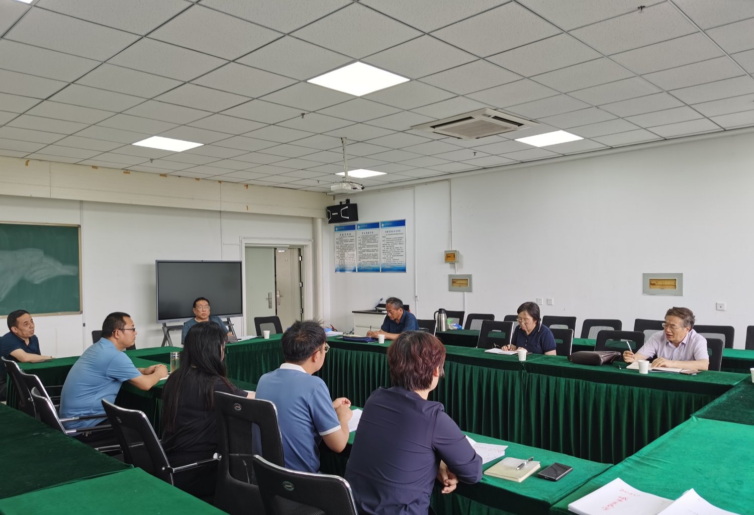 段喜明院长就学院基本情况、各专业学生的实习情况以及存在的问题进行了汇报,教务部督导组根据《教育部关于加强和规范普通本科高校实习管理工作的意见》(教高函[2019]12号)和山西省教育厅下发的《关于开展普通本科高校实习管理专项检查的通知》内容,围绕8个大类的内容,对标对表逐一进行检查,并就老师们提出的疑问进行解答指导。段喜明院长最后总结强调,各个专业要根据自身的特点和实际情况,围绕指标进行自查,对标对表进一步补充完善相关支撑材料,要坚持问题导向,认真总结工作经验和不足,梳理发现的问题,分析问题的原因,为下一步整改做好准备。