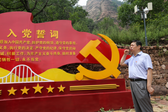 在兵工厂广场,全体党员同举右手,庄严宣誓,铿锵有力的誓言,久久回荡在群山峻岭。