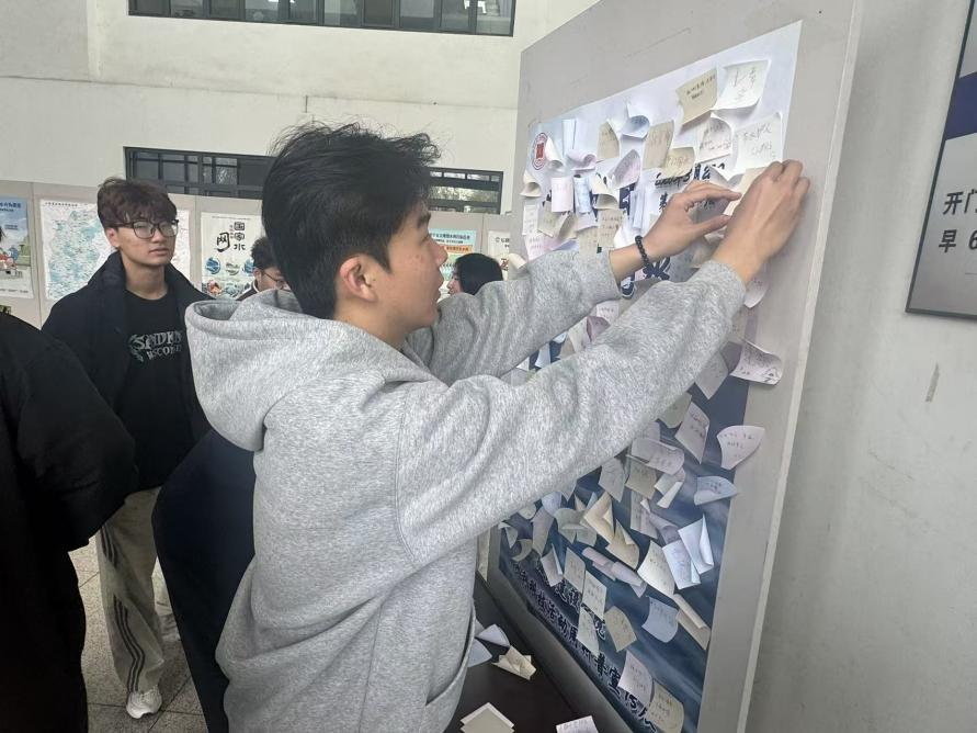 活动周期间,学院在崇实楼大厅举行为期一周的主题科普展。展览围绕国家水网建设成果与未来规划,设置“十四五”国家水网建设成就、“十五五”水利发展目标任务、公民节约用水行为规范、山西省现代水网建设工程布置图、山西省县域水网规划图等专题板块,通过图文展板与互动讲解相结合的形式,系统展示我国及山西省水利事业发展成就,普及节水护水知识,引导师生深入了解国家水安全战略,增强水资源保护意识。“心愿便利贴”互动专区汇聚数百张师生留言,“节水护水重在日常”“科技赋能节水”等承诺彰显行动决心。