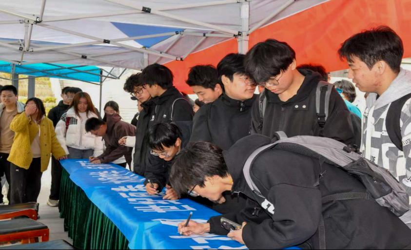 同日,学院领导和广大师生在勤学楼广场举办“节水与我同行”千人签名活动。张鹏书记、段喜明院长率先在印有“国家水网 世纪画卷 水润中华 安澜万家”的条幅上郑重署名,承诺践行节水责任,全校师生广泛参与,纷纷签名倡议节水、护水行动。水利支部党员志愿者现场讲解节水知识,深化“人人参与、共建绿色校园”的理念。