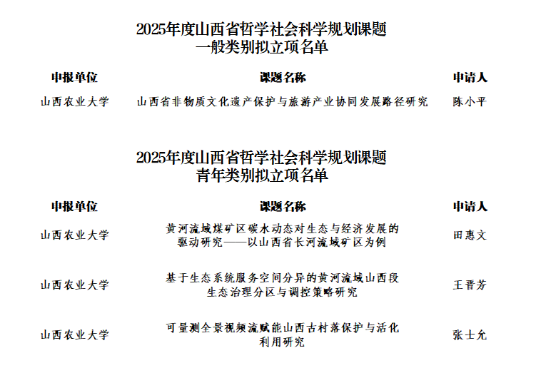 近日公布的2025年度山西省哲学社会科学规划课题重大类别拟立项名单中,我院申报工作成绩斐然,四名老师获批立项。