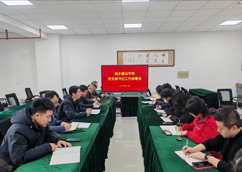 12月1日,城乡建设学院党委在402会议室组织召开党支部工作部署会。会议由学院党委书记张鹏主持,党委副书记冯涛,党委委员、副院长徐晓波,党委委员、团委书记王立柱,党委委员、土木工程系党支部书记刘中华出席会议,学院各党支部书记参加会议。