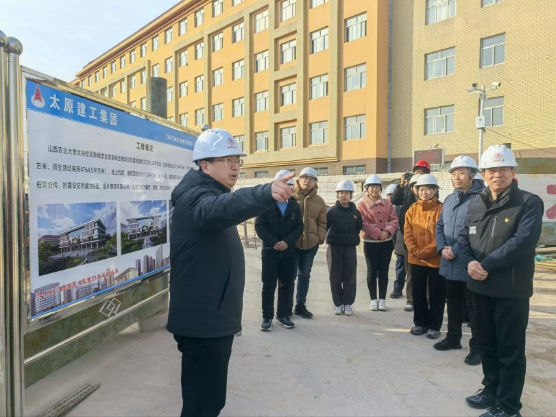 为深入学习贯彻党的二十届四中全会精神,12月11日上午,我院土木工程系教工党支部联合后勤党委基建党支部、太原建工集团农大食堂施工项目党支部、鲁班工程管理公司农大食堂监理项目党支部,在太谷校区禾园综合体建设工地共同开展党建联建主题党日活动。学院党委书记张鹏,后勤党委书记、后勤保卫部部长陈斌,院党委副书记冯涛,土木工程系教工党支部书记刘中华,太原建工集团副总经理李武林等相关单位负责人及各支部党员代表参加活动。