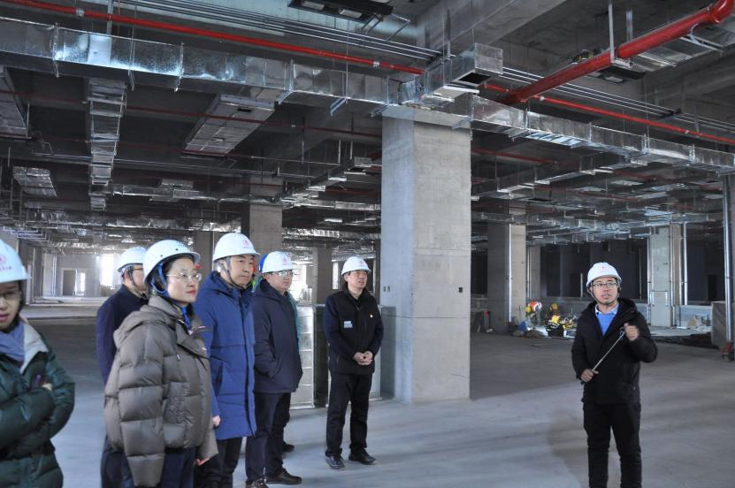 在项目现场,基建科副科长武少赟介绍了工地“三区分离”布局及项目整体情况。随后,大家深入食堂一层、二层等区域,实地查看了样板间建设情况,近距离感受了项目内部规划布局、选材用料、设施质量以及储物空间等方面内容,全方位体验了新型建材与智能建造技术的落地成效。
