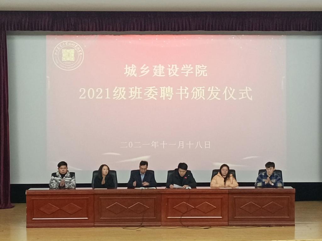 为提高我院班委工作的积极性,进一步明确班委工作职责,11月18日,我院于图书馆报告厅召开2021级班委聘书颁发仪式,院党委副书记冯涛、分团委老师出席,大一全体学生参加。