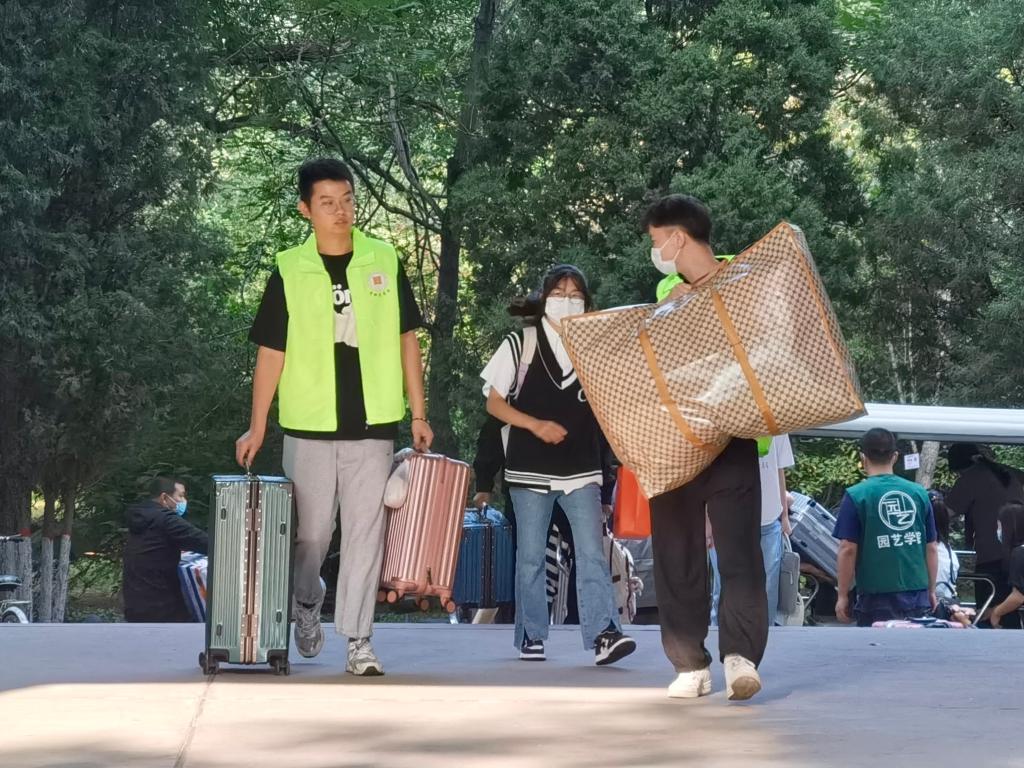 清晨的校园里,迎新工作一切准备就绪,等待着新生们到来。报到新生一进校园,学院教职工及学生志愿者便迎上前去,帮新生们搬运行李、指引报到、解答问题。在办理完各种手续后,将他们送到宿舍,并帮助他们代取快递,将急需的生活用品从快递站运送至宿舍楼,让新生们安心入住。
