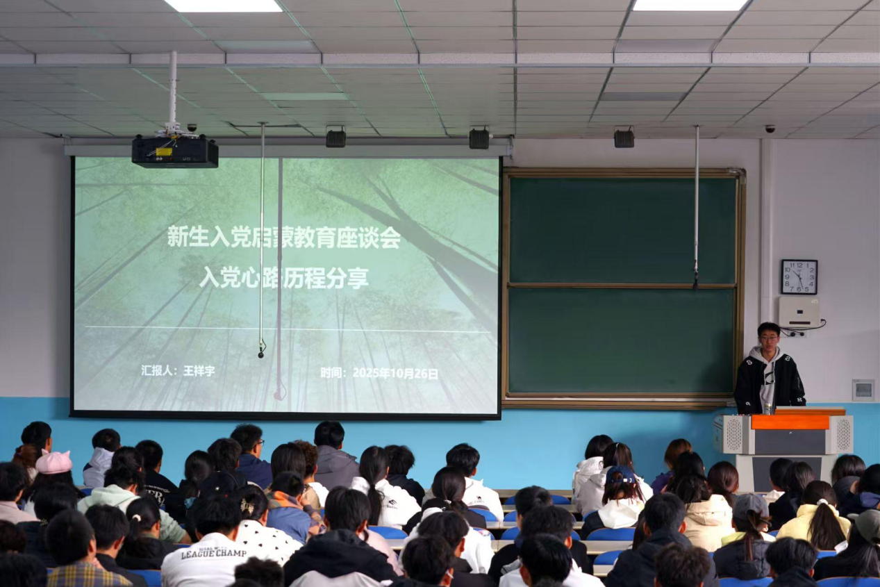10月26日,学院党委副书记冯涛在崇信楼107主持召开了新生入党启蒙教育座谈会。他以“百年沧桑,以史为鉴”为题,结合重要历史节点,回顾了国家发展的光辉历程,阐释了中国共产党的领导是历史和人民的选择,并系统讲解了党的指导思想的传承与发展。冯涛还提醒同学们增强网络安全意识与法治观念,勉励大家以优秀党员为榜样,将个人成长自觉融入国家发展大局。