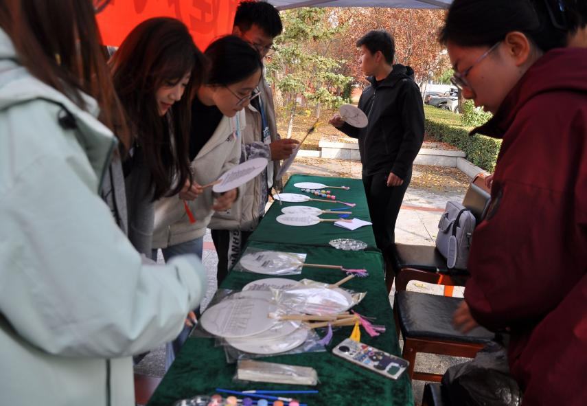 为弘扬中华优秀传统文化,丰富校园美育实践,11月8日,城乡建设学院古建风韵社团在思想湖小广场成功举办“扇绘古纹,色染时光”传统工艺体验活动。活动以线下形式开展,吸引了众多对传统工艺感兴趣的同学积极参与。