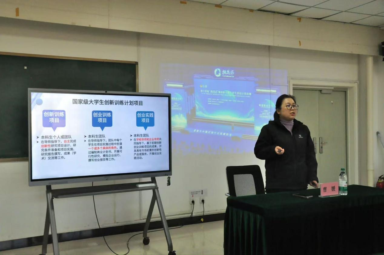 讲座中,曹媛围绕创新创业的核心逻辑、行业趋势及实践路径展开系统阐述,结合高校人才培养特点与学科优势,从团队组建、资源整合到竞赛筹备等关键环节进行深入讲解。她通过真实案例剖析与实用方法指导,详细拆解了创新创业项目与竞赛过程中的重点难点,并针对竞赛项目打磨、创业计划书撰写等学生普遍关注的问题予以细致辅导。在互动交流环节,曹媛耐心解答同学们在双创实践中遇到的困惑,为学生进一步厘清了思路、指明了方向。在场学生认真聆听、积极记录,纷纷表示讲座内容系统实用、启发性强,不仅增强了对创新创业的系统认知,也为今后参与相关实践与竞赛积累了宝贵经验。