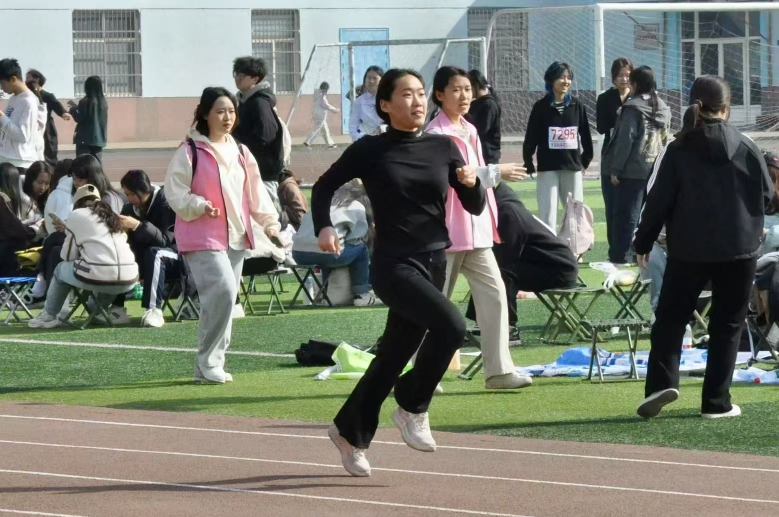开幕式结束后,紧张激烈的比赛正式打响。本次运动会涵盖多项田赛与径赛项目。径赛赛道上,短跑运动员如离弦之箭,从起跑瞬间便全力冲刺,每一步都踏得坚定有力;中长跑选手展现出顽强的毅力,在漫长的赛道上调整呼吸、保持节奏,即便体力透支也绝不放弃。田赛场地同样精彩,跳远选手助跑、踏板、腾空,每一次跳跃都向着更远的目标发起冲击;跳高健儿身轻如燕,不断挑战新的高度,在空中划出优美的弧线;铅球投掷区,运动员们鼓足力气,将沉重的铅球奋力掷出,落地时激起阵阵尘土。运动健儿们奋勇争先,不断突破自我,用实际行动诠释了“更快、更高、更强”的体育精神。